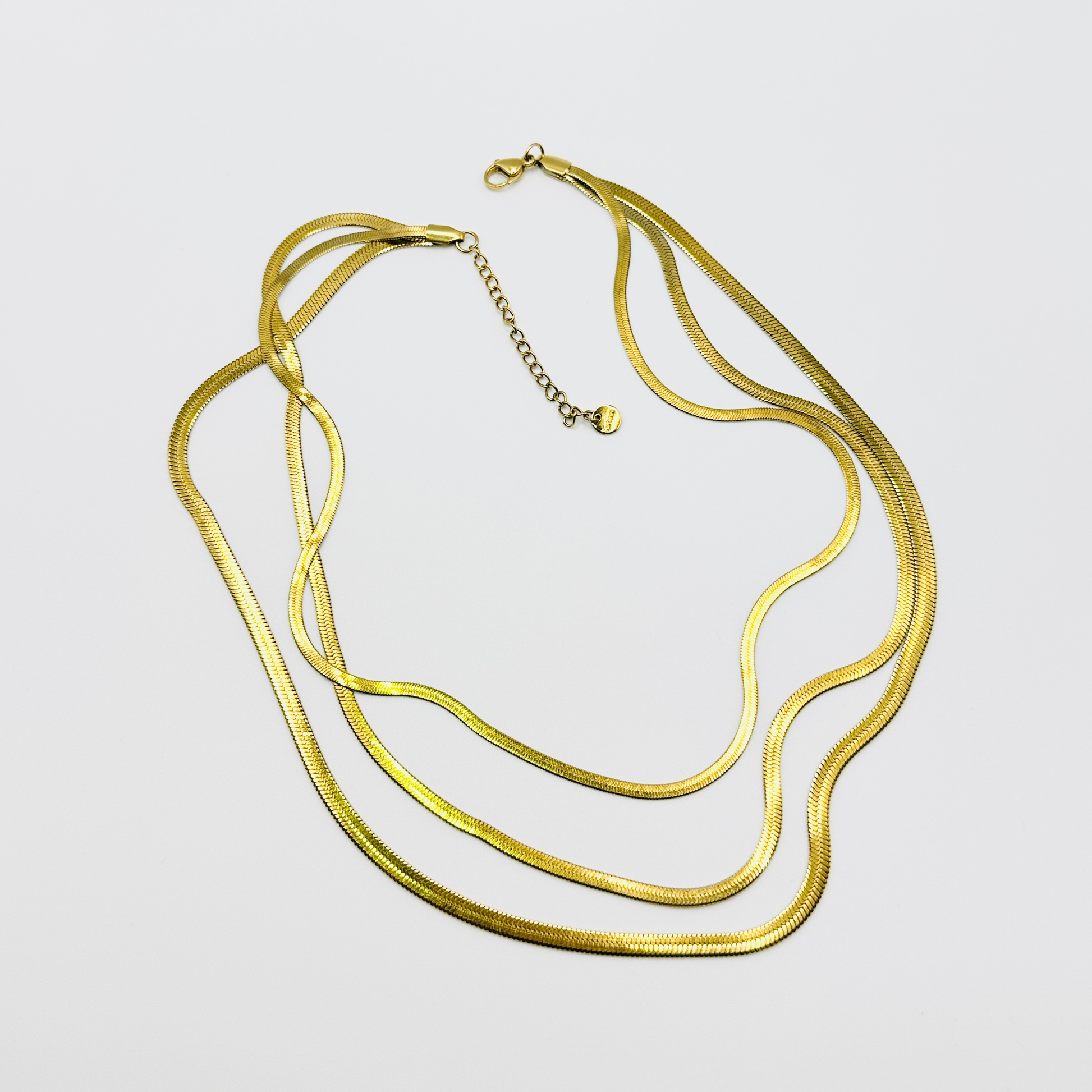 Este choker collar triple conexión en acero inoxidable dorado combina tres cadenas de espiga que se entrelazan con elegancia, creando una pieza sofisticada y duradera. Perfecto para ocasiones especiales que quieres recordar, realza cualquier outfit con un toque de distinción y estilo que no pasa desapercibido. Su diseño resistente asegura que lo disfrutes por mucho tiempo, manteniendo siempre su brillo y color.