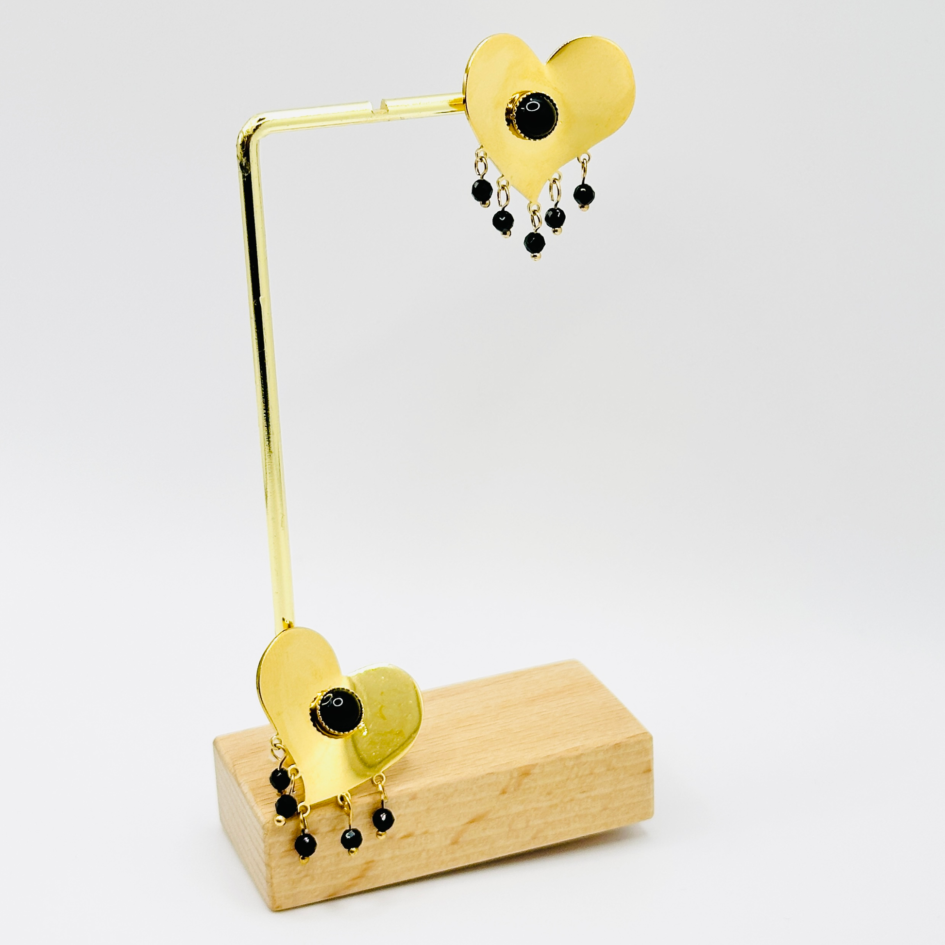 Estos pendientes Lagrimas Negras combinan elegancia y un diseño sofisticado en forma de corazón, adornados con cuentas negras que resaltan su estilo único. Fabricados en acero inoxidable, ofrecen durabilidad y un brillo impecable, ideales para complementar un look de noche y añadir un toque de glamour irresistible a tu outfit. Perfectos para quienes buscan un accesorio que destaque en cualquier evento elegante.
